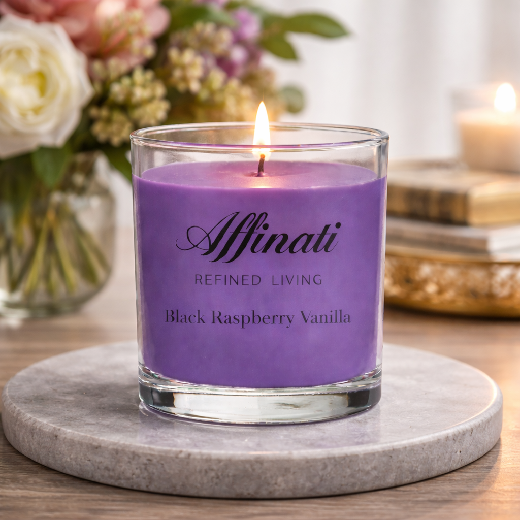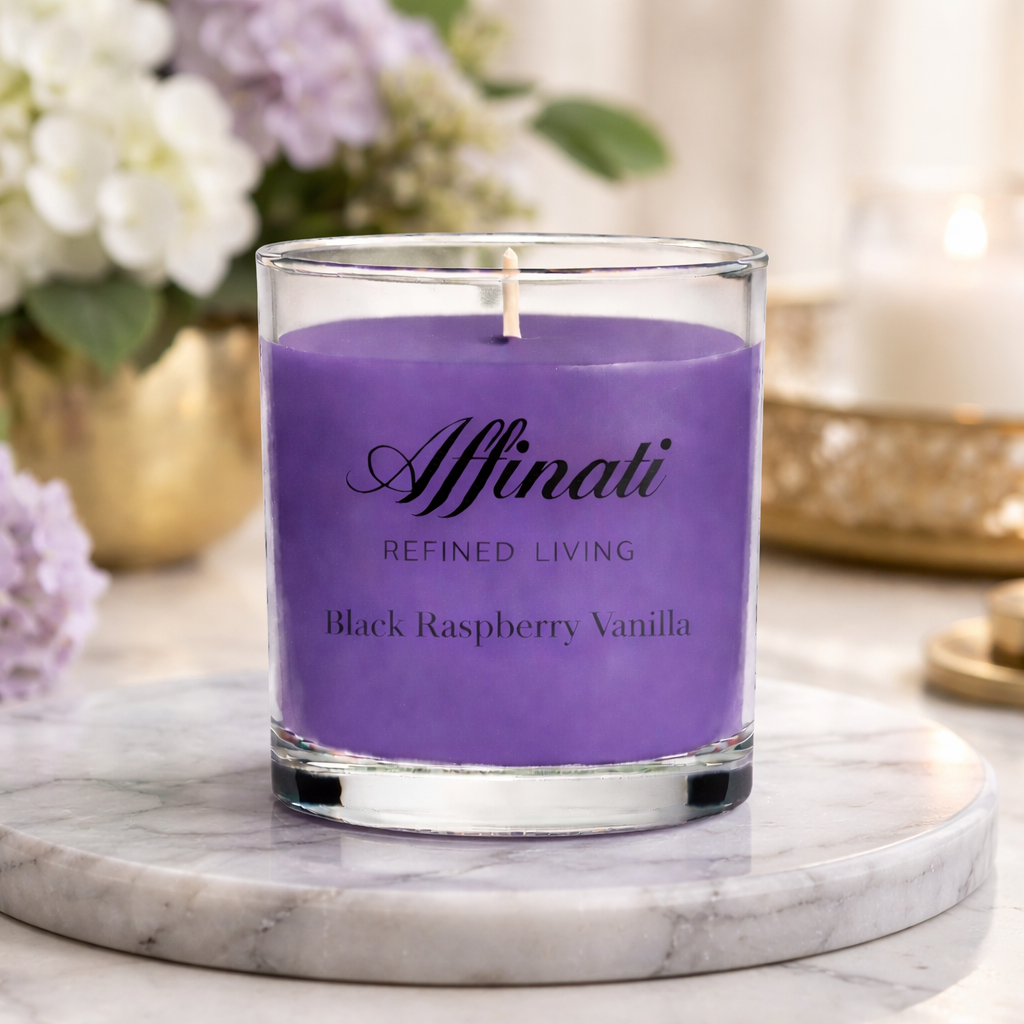 شمعة صغيرة بنكهة توت العليق الأسود والفانيليا