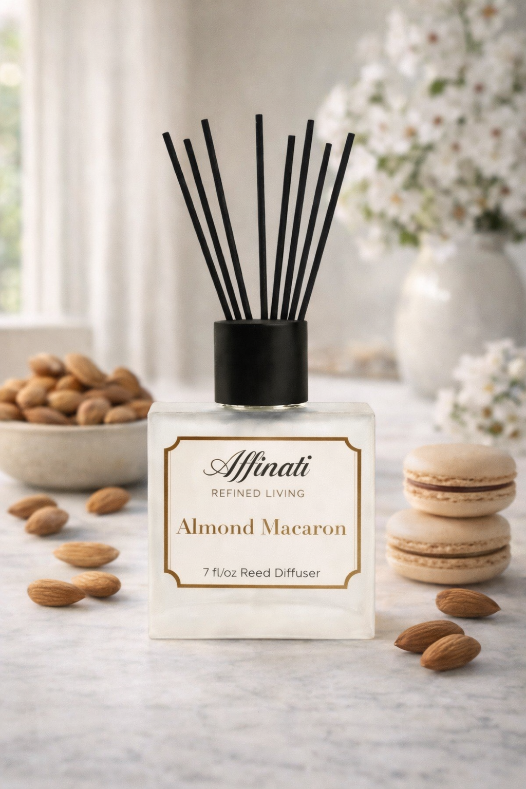 Dopřejte svým smyslům teplou, uklidňující vůni našeho difuzéru Almond Macaron Reed. Tento difuzér o objemu 7,0 fl oz je vyroben s netoxickou formulí, která kombinuje sladkou mandle, vanilku a nádech opraženého cukru pro útulnou, čerstvě pečenou vůni. Ideální pro přidání doteku elegance a tepla do jakéhokoli pokoje, obsahuje 8 ekologických rákosových tyčinek, které poskytují nepřetržitou, bezplamennou vůni po týdny.