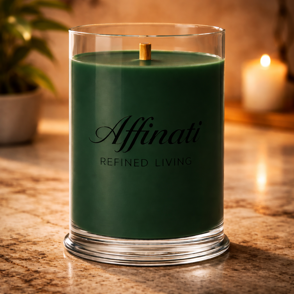 Vonné svíčky Affinati jsou vyrobeny z prémiové směsi sójového vosku a trojitých dřevěných knotů pro dlouhotrvající hoření. Naše 3-knotové svíčky obvykle hoří 70–90 hodin, zatímco naše jednonotové svíčky Signature poskytují 60–70 hodin vůně.