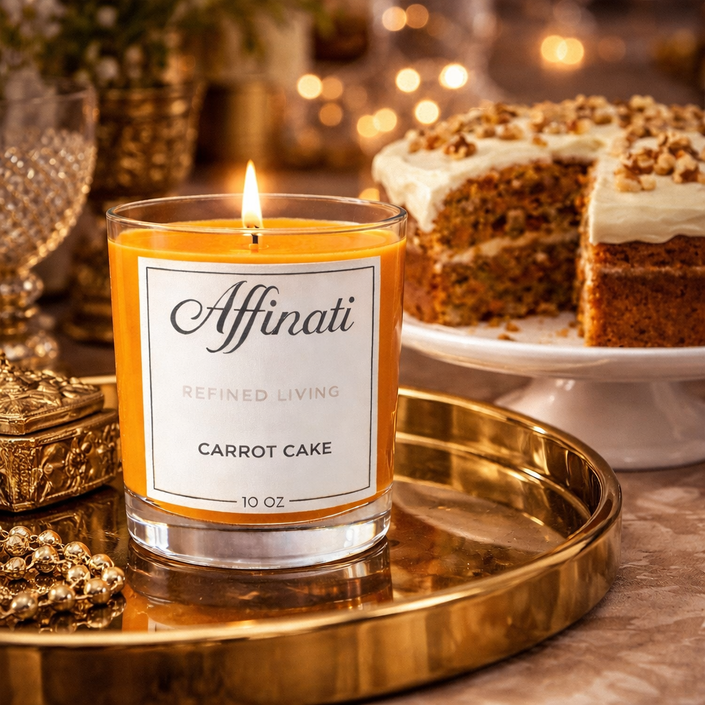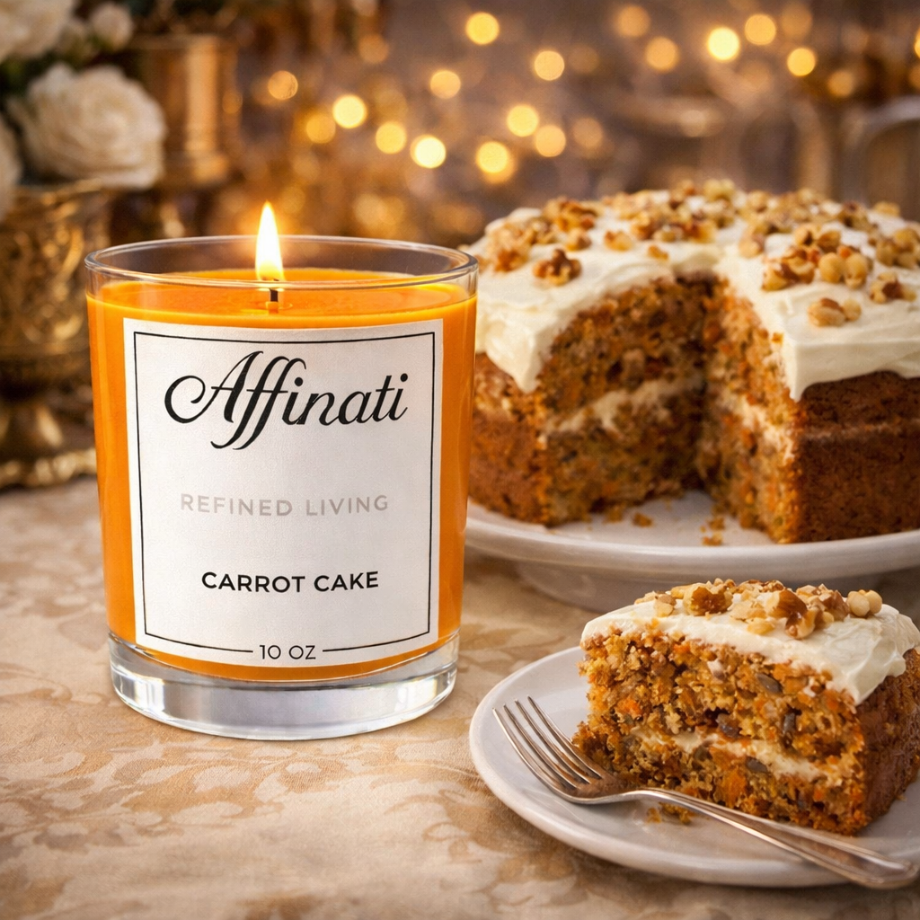 Ideální pro útulná odpoledne a relaxační večery, Carrot Cake naplní váš domov bohatým, uklidňujícím teplem.