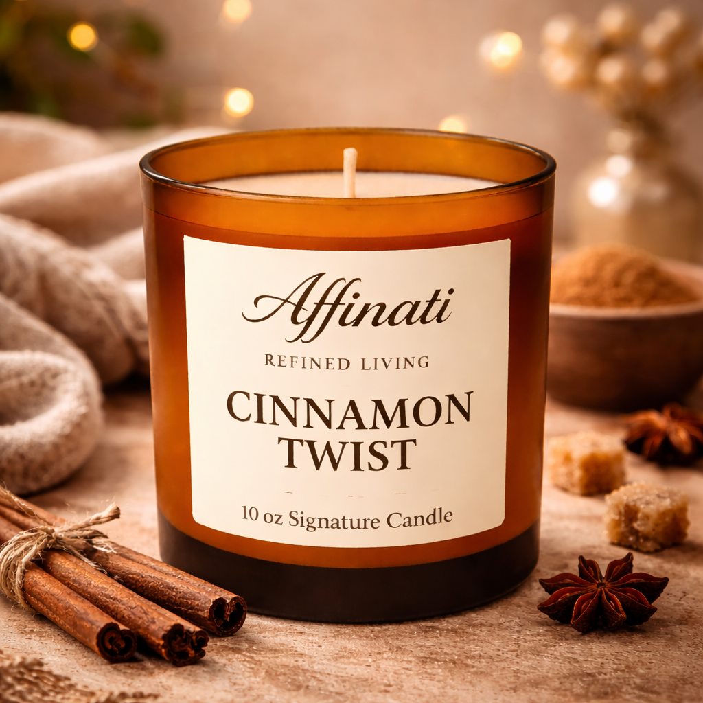 Přineste do svého prostoru útulné teplo a neodolatelný komfort s vonnou svíčkou Affinati Cinnamon Twist Signature – 10 oz. Inspirovaná čerstvě upečenými skořicovými dobrotami s jemným nádechem, tato příjemná vůně spojuje výrazné skořicové koření s jemnou sladkostí a krémovou vanilkou pro vůni, která působí teple, luxusně a nenuceně elegantně.