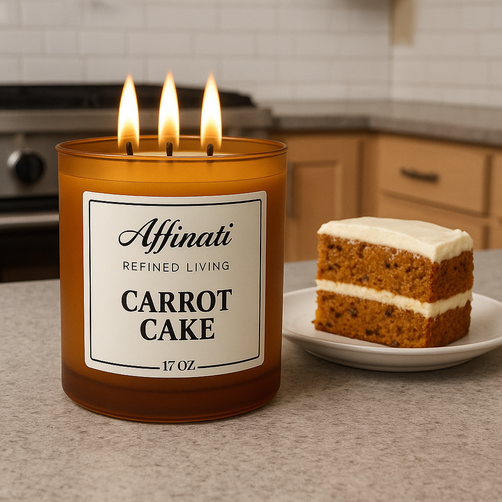 Duften kombinerer krydret gulerodskage, varm vaniljefrosting og et strejf af kanel og muskatnød, hvilket skaber en hyggelig, lækker aroma, der forvandler ethvert rum til et bageri-friskt tilflugtssted.