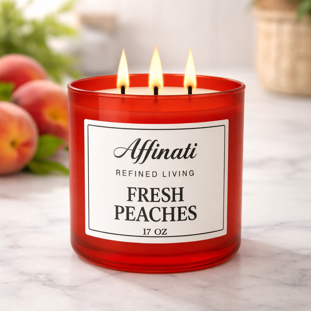 Perfekt til at tilføre frisk, frugtagtig glød til dit rum, føles Fresh Peaches opløftende, saftig og dejligt livlig—ideel til sommer eller når som helst, du ønsker et solskinsudbrud indendørs.