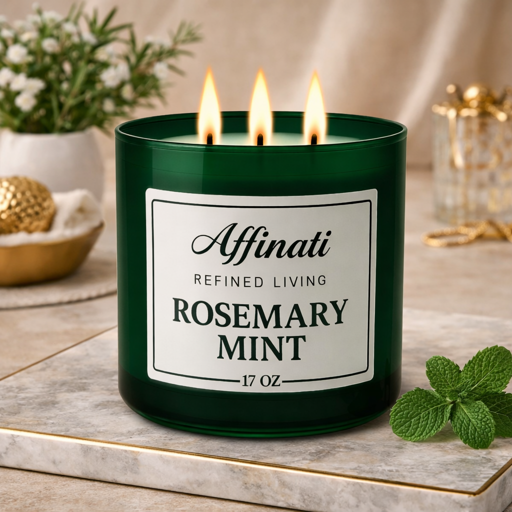 Ιδανικό για να φωτίσετε τον χώρο σας με φυσική φρεσκάδα, το Rosemary Mint προσφέρει αναζωογόνηση, καταπράυνση και υπέροχη διαύγεια — ιδανικό για κουζίνες, μπάνια και χώρους τύπου σπα.