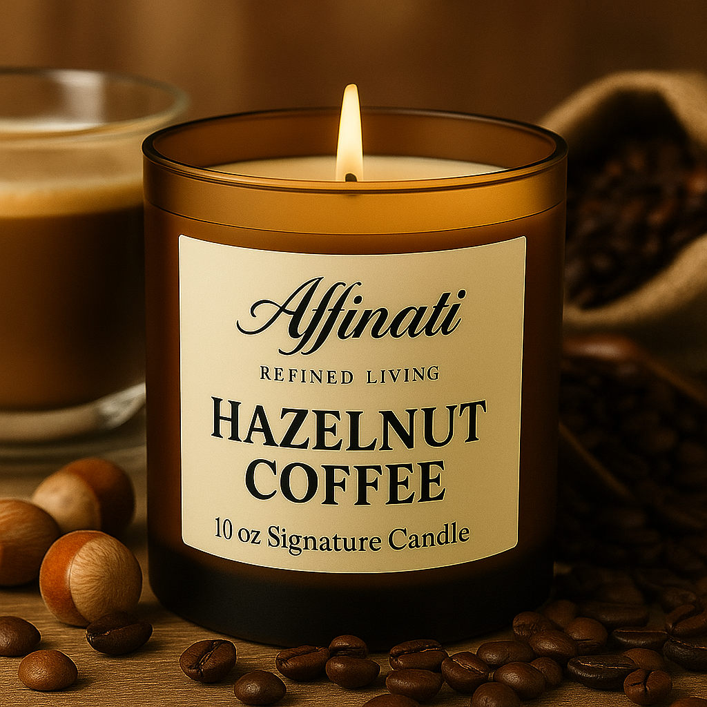 Perfecto para crear un ambiente acogedor y relajante en cualquier habitación, Hazelnut Coffee captura la esencia del placer cotidiano: espresso recién hecho, avellana dulce y suave crema de vainilla mezclados en una fragancia acogedora que hace que tu hogar se sienta como tu cafetería favorita.
