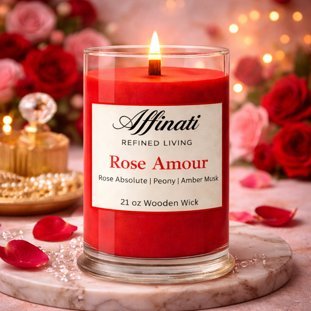 Perfecta para áreas de estar abiertas, reuniones o como centro de mesa para noches elegantes, la vela Rose Amour de 21 oz captura el corazón del romance en su forma más lujosa—elaborada con el espíritu de Affinati Refined Living.