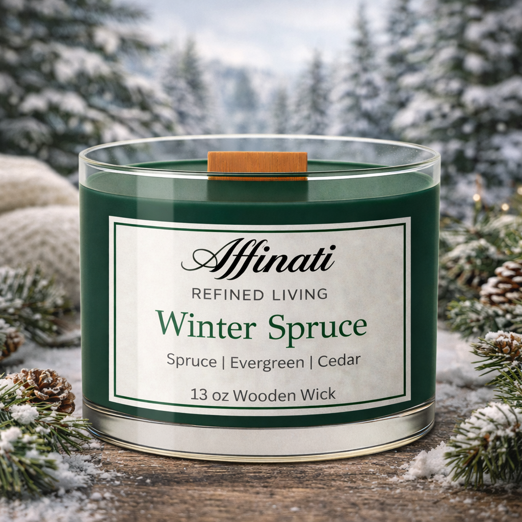Vela de mecha de madera Winter Spruce – Lujo 13 oz mezcla de soja | Affinati
