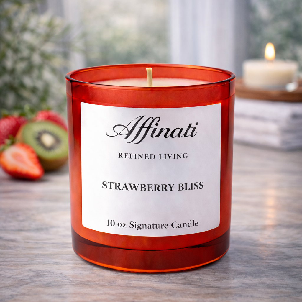 अपने घर में मीठे बेरी की ताजगी का विस्फोट लाएं Affinati स्ट्रॉबेरी ब्लिस सिग्नेचर कैंडल – 10 औंस के साथ। यह मनमोहक खुशबू पकी स्ट्रॉबेरी की खुशबू को नरम मीठास के साथ मिलाकर एक चमकीली, खुशमिजाज खुशबू बनाती है जो रसदार, मुलायम, और खूबसूरती से उत्साहवर्धक महसूस होती है।