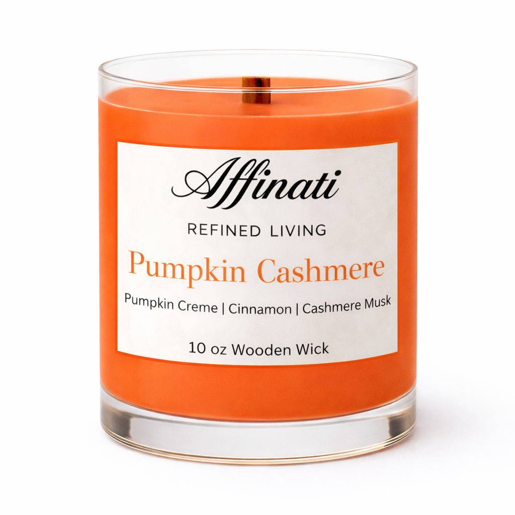 침실, 독서 공간 또는 저녁 휴식에 완벽한 10온스 펌킨 캐시미어 캔들은 어떤 공간에도 우아함과 평온함을 더합니다. Affinati의 정제된 라이프스타일 시그니처 스타일로 가을의 가장 고급스러운 편안함을 경험해 보세요.