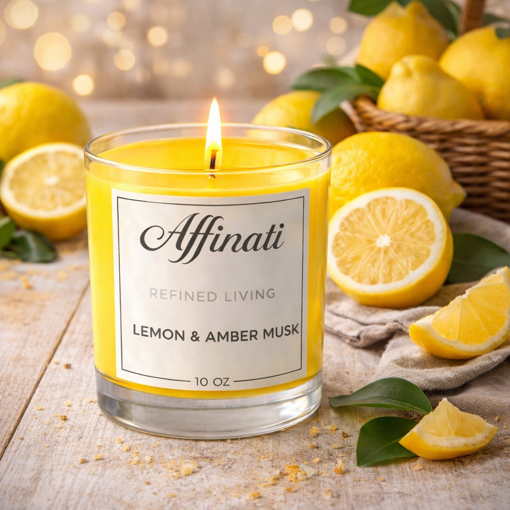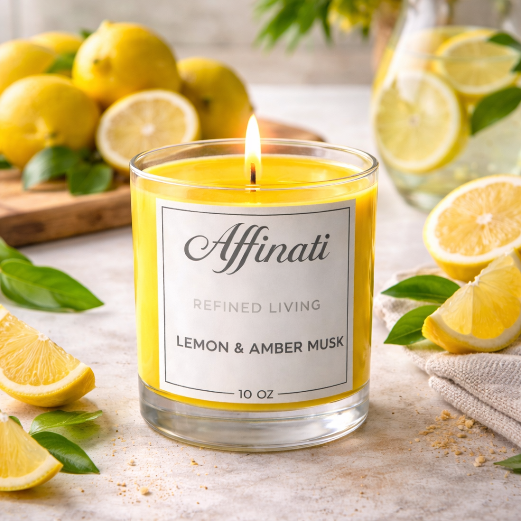 Lemon & Amber Musk combineert heldere citrus met warme diepte. Verse citroenschil ontmoet zachte amber en zachte musk voor een geur die fris en toch aards aanvoelt.