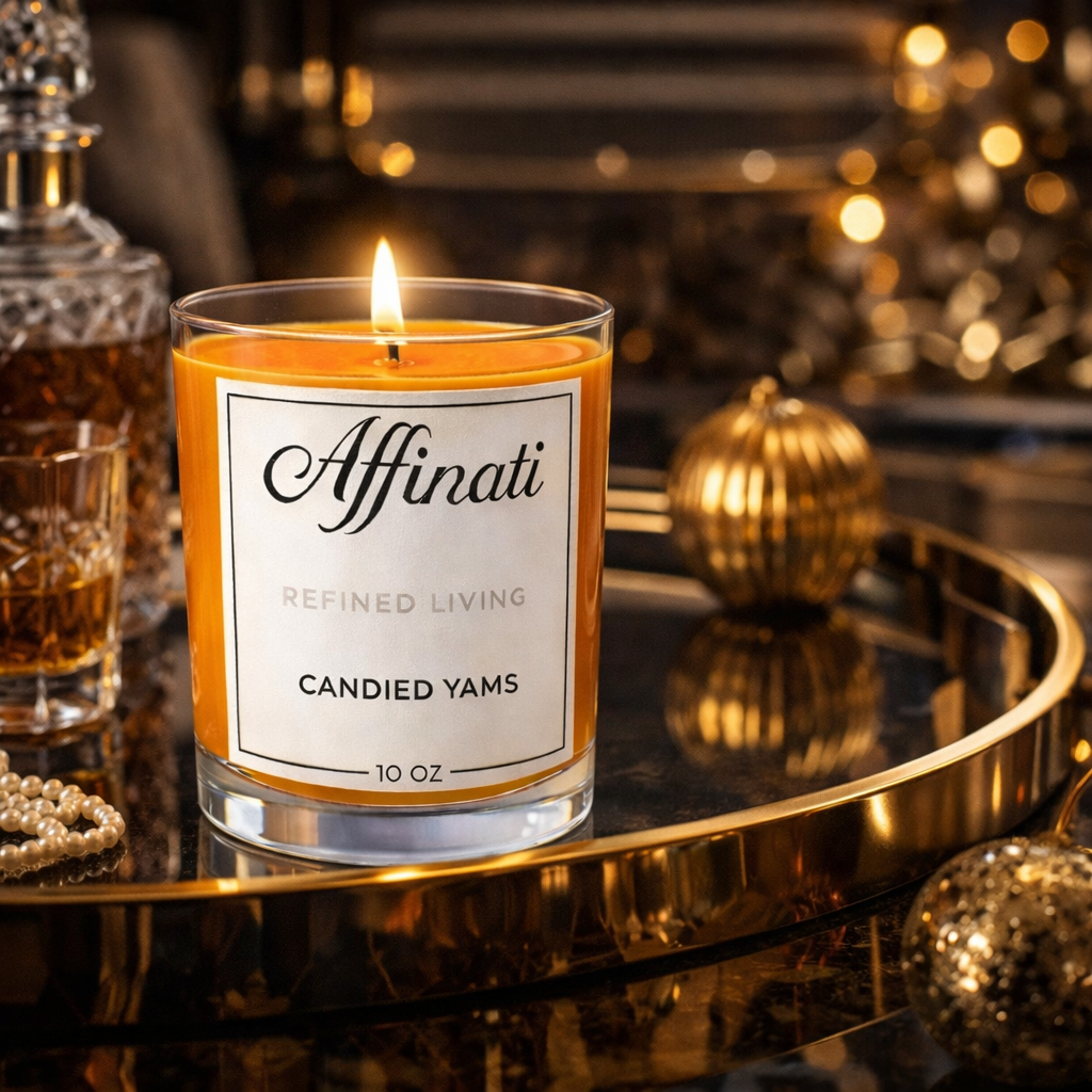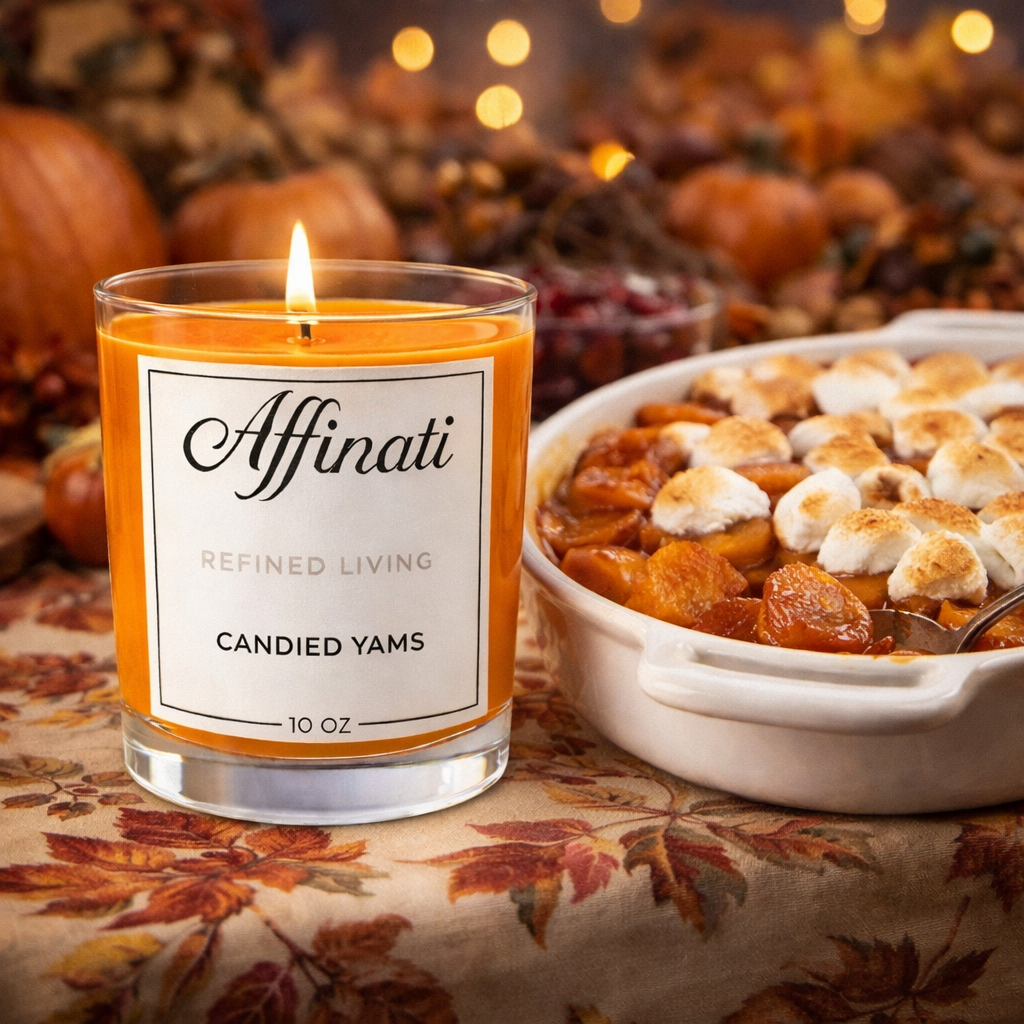 Candied Yams bringer rik, varm høytidsstemning inn i rommet ditt. Søte søtpoteter blandes med brunt sukker, smør og krydder for en nostalgisk, trøstende aroma.