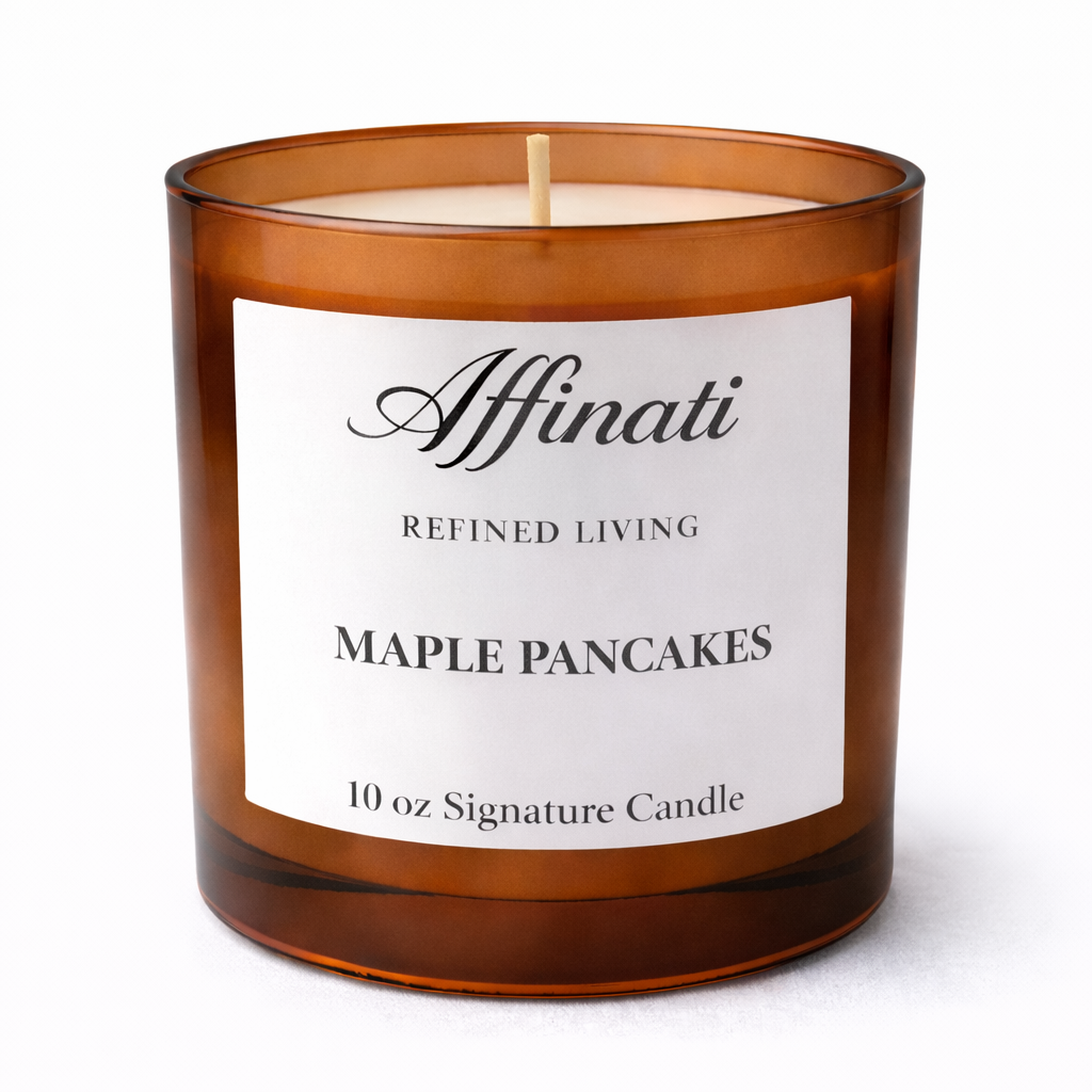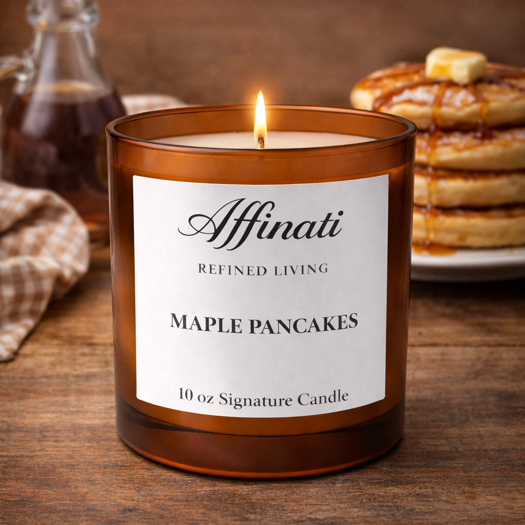 Fyll hjemmet ditt med koselig nytelse med Affinati Maple Pancakes Signature Candle – 10 oz, en varm gourmandduft inspirert av rolige morgener og trøstende sødme. Rik lønnesirup blandes med smøraktig røre og myk vanilje, og skaper en kjent aroma som føles innbydende, nostalgisk og perfekt balansert.