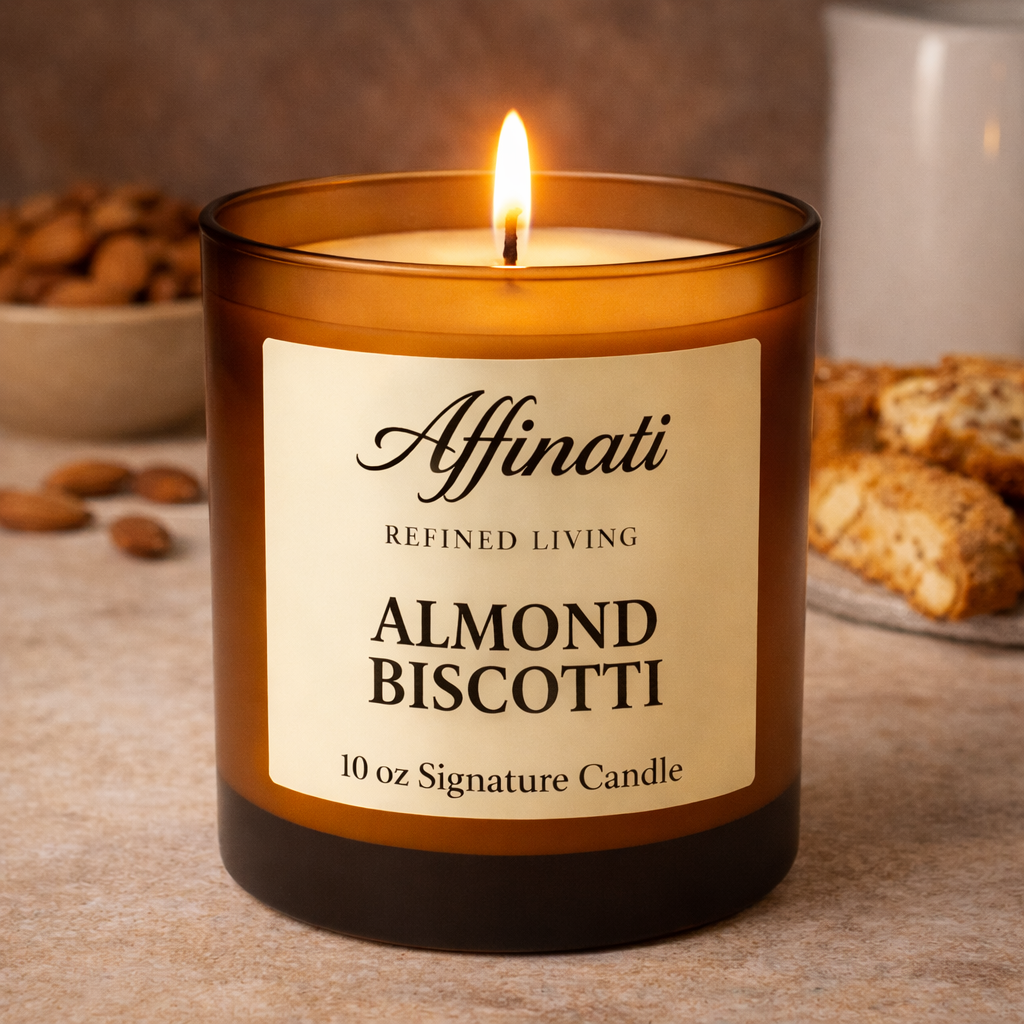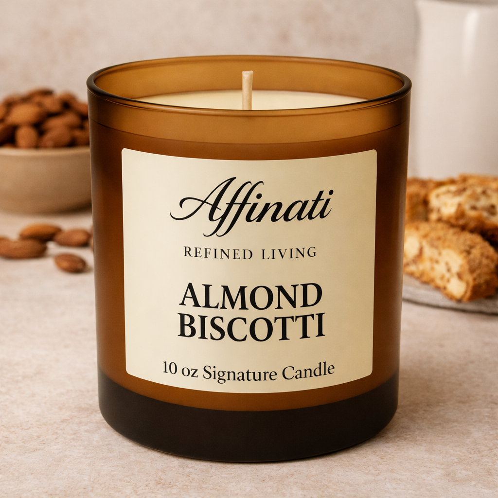 Adaugă căldură și confort indulgent în spațiul tău cu Lumânarea Semnătură Affinati Almond Biscotti – 10 oz. Inspirat de biscotti italiene proaspăt coapte, acest parfum combină migdalele nuci, dulceața delicată și vanilia untuoasă pentru o aromă cozy, dar rafinată, care se simte atât primitoare, cât și elegantă.