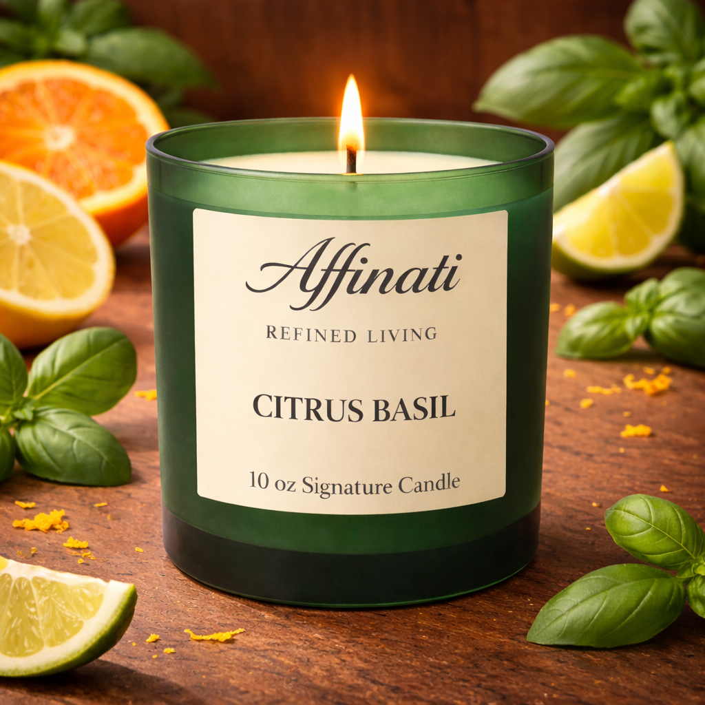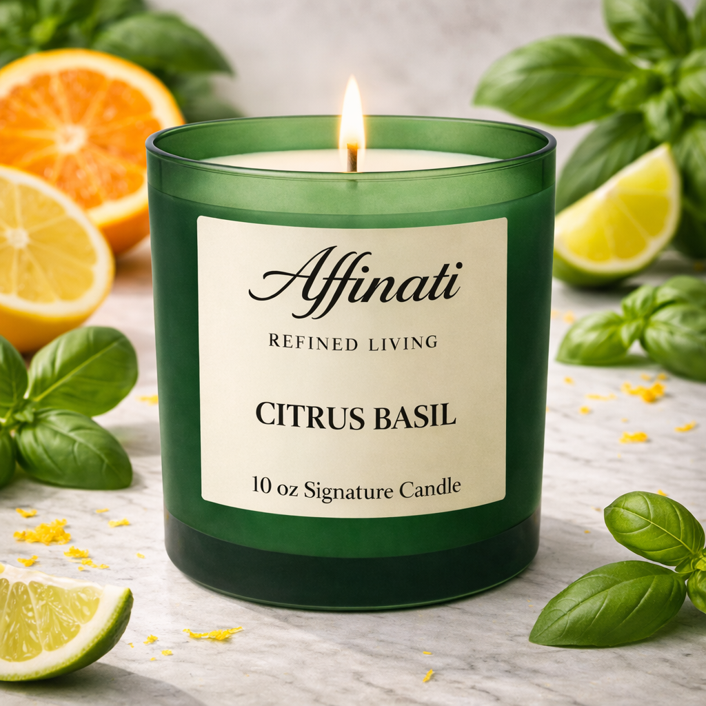 Creează o atmosferă luminoasă și revigorantă cu lumânarea semnătură Affinati Citrus Basil – 10 oz, un parfum energizant conceput să-ți învioreze și să-ți reîmprospăteze spațiul. Notele citrice zesty se îmbină perfect cu busuiocul aromatic și tonurile verzi delicate, creând un miros curat, vibrant și natural echilibrat. Realizată cu un amestec premium de ceară de soia, această lumânare oferă o ardere curată cu o difuzie a parfumului netedă și de lungă durată.