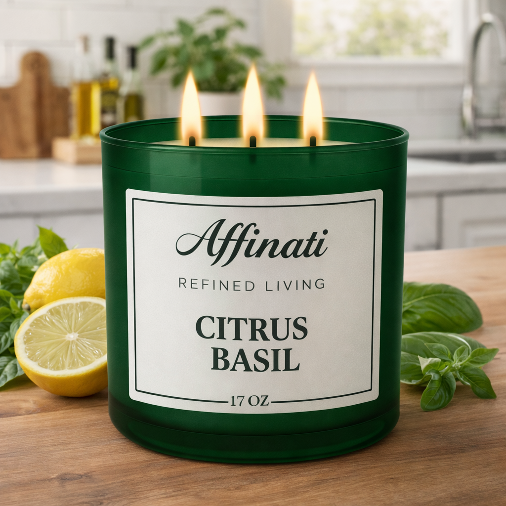 Lys upp ditt rum med den fräscha, upplyftande doften av vårt Citrus Basilika 3-vägs ljus. Denna livfulla blandning kombinerar krispiga citrusnoter med aromatisk basilika och mjuk grönska, vilket skapar en ren, uppfriskande doft som känns både energigivande och förfinad.