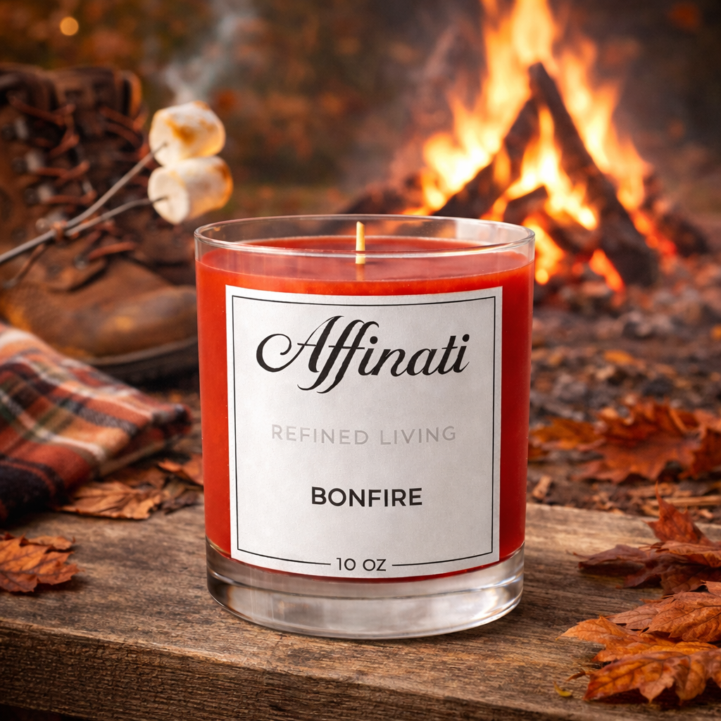 Bonfire fångar den mysiga värmen från en sprakande eld en kylig kväll. Rökiga träslag blandas med subtil sötma för en doft som känns jordande och tröstande.