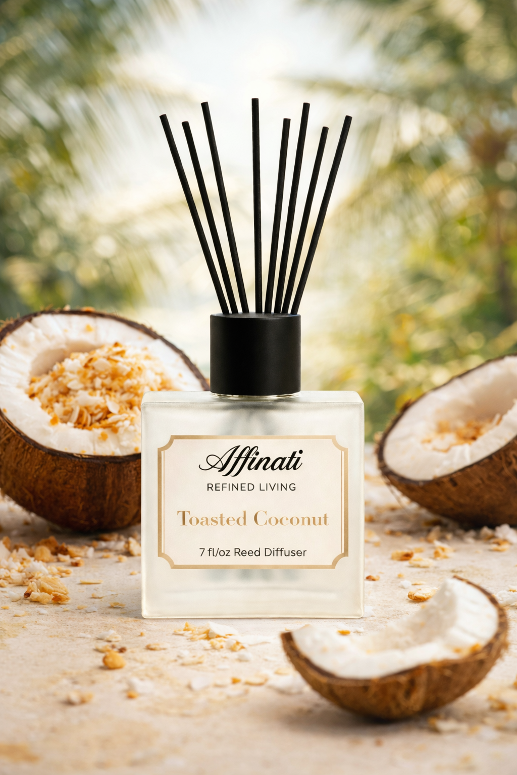 用我们的烤椰子藤条扩香器为您的家带来温暖奢华的舒适感。这款7.0液体盎司的扩香器采用无毒香氛混合,捕捉烤椰子的奶油浓郁、温暖的香草糖、焦糖甜味和柔和的热带木质香气。其香味舒适奢华,诱人难挡——奶油、温暖与轻甜的完美平衡。
